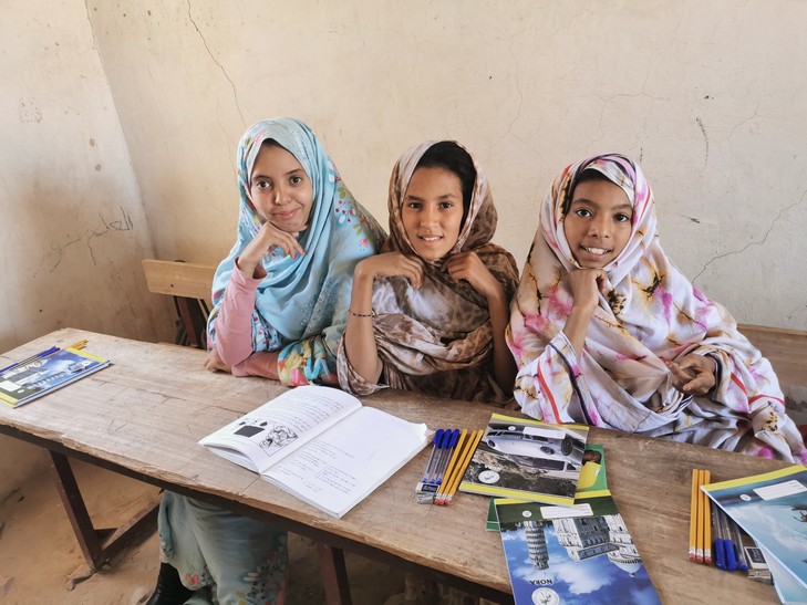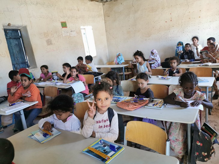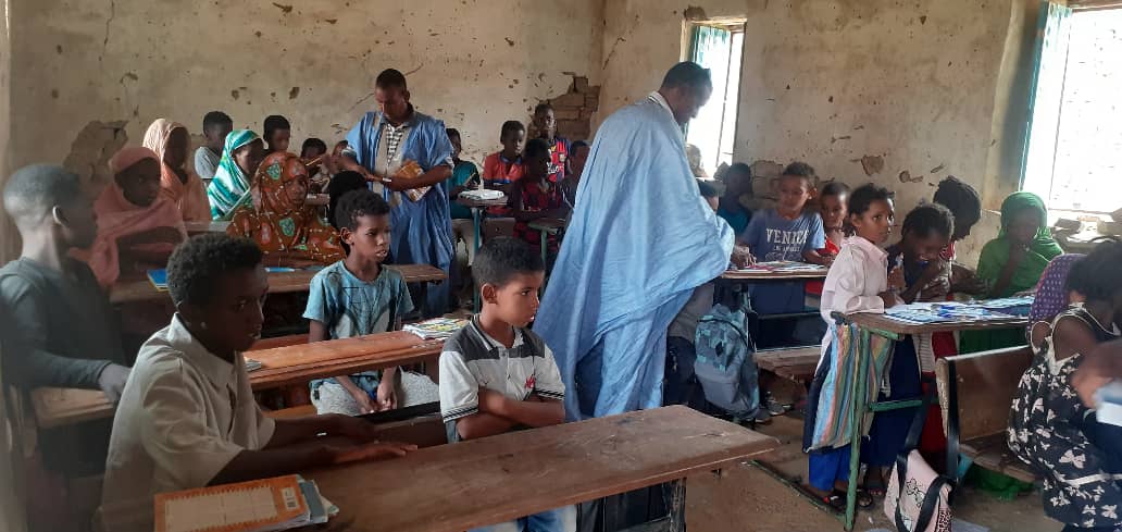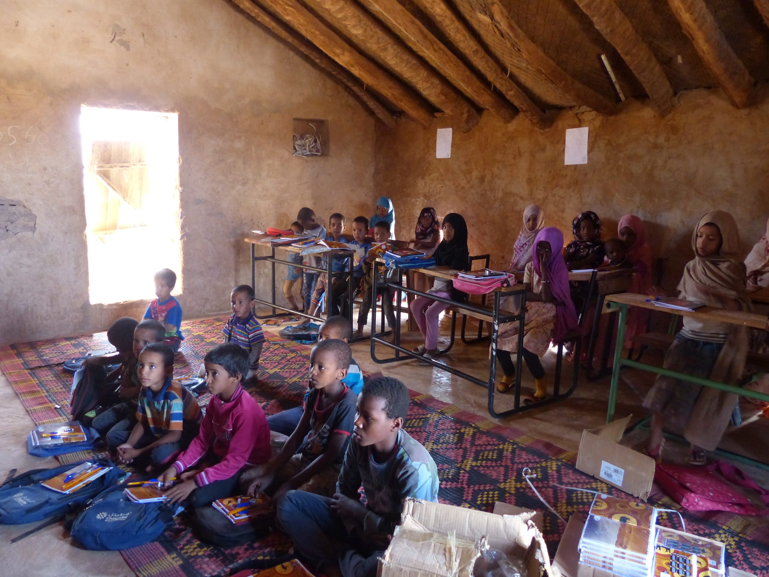Les fournitures ont été données aux élèves de 4 écoles de la périphérie pauvre d’Atar et à ceux de 8 écoles situées dans les petits villages des oasis : Tirabane, Talhayatt, Maïden, Salah Darein, Ouagcheda, Jouelat, Timinit et Rag.
